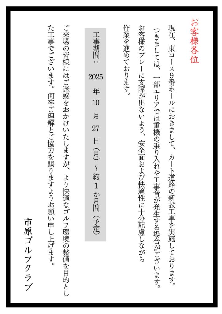 カート道路の新設工事のお知らせ