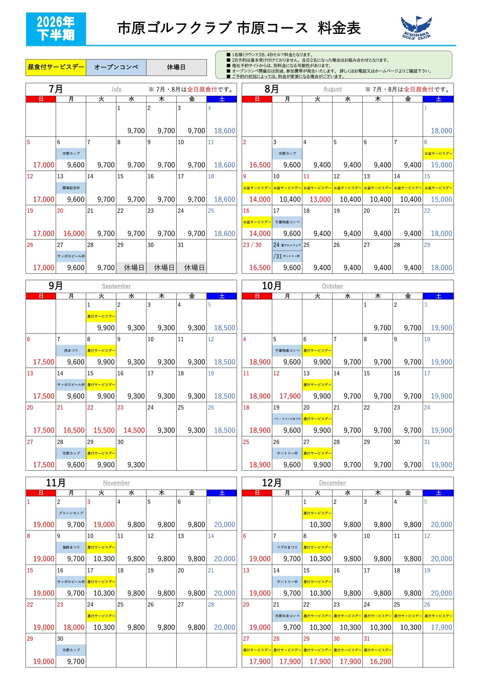 - ※上記料金は、消費税、ゴルフ場利用税を含みます。
