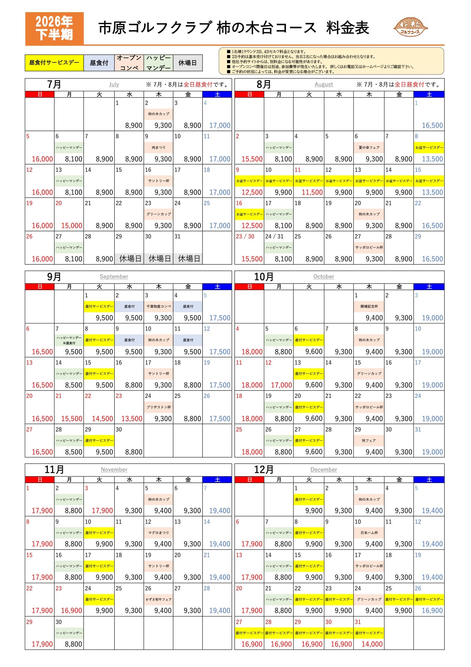 - ※上記料金は、消費税、ゴルフ場利用税を含みます。